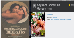 Figure 5 Poster for Ayiram Chirakulla Moham (left) with “Vinayan” credited as the director. On the right, the IMDb page for the same film with “Ashokan” credited as the director.