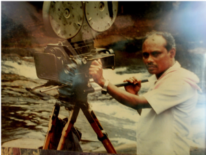 Figure 6: Photograph of K.S. Gopalakrishnan on the shoot of Charavalayam (Spy-circle) (1988), from one of his personal photo albums.