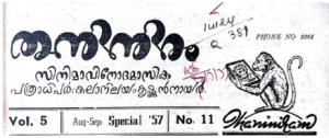 Figure 1.4: Logo of Thaniniram Film Entertainment Magazine. The text reads “Thaniniram Film Entertainment Magazine, editor Kalanilayam Krishnan Nair.” Source: Vol.5, No. 11 Aug-Sep 1957.