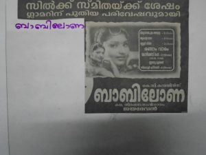 Figure 1: Newspaper clipping of Babylona (Dir. Jayadevan, 2002). Image Courtesy: Sarat Chandran